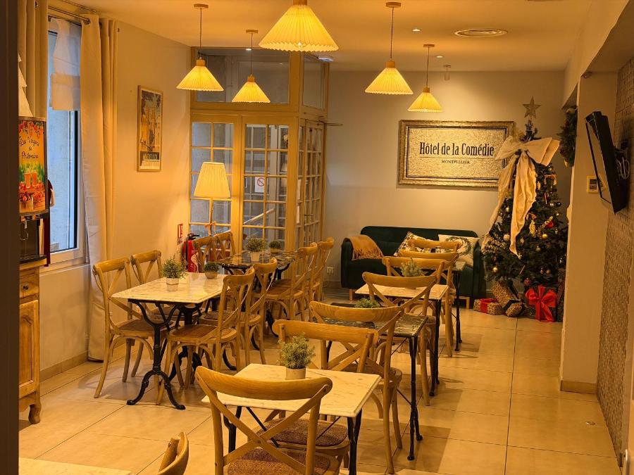 Dietro una facciata haussmanniana tipica del XIX secolo, l'Hotel de La Comédie vi accoglie in un edificio dal fascino classico, nella tranquillità di una strada silenziosa nel centro di Montpellier. Alcuni gradini conducono all'ingresso dell'hotel, rivelando un interno discreto in cui si mescolano elementi antichi di un edificio di carattere e il comfort essenziale per un soggiorno piacevole.